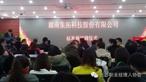 12月23日上午11点18分,博五班学员徐森林创办的湖南集拓科技股份有限公司,在湖南股权交易所24楼交易大厅成功举行了标准版挂牌仪式。长沙市人民政府副市长何寄华先生,(湘高协、长高协、长职协)三协会联合秘书处秘书长陈政峰以及中南大学EDP中心部分学员等出席了此次挂牌仪式。
