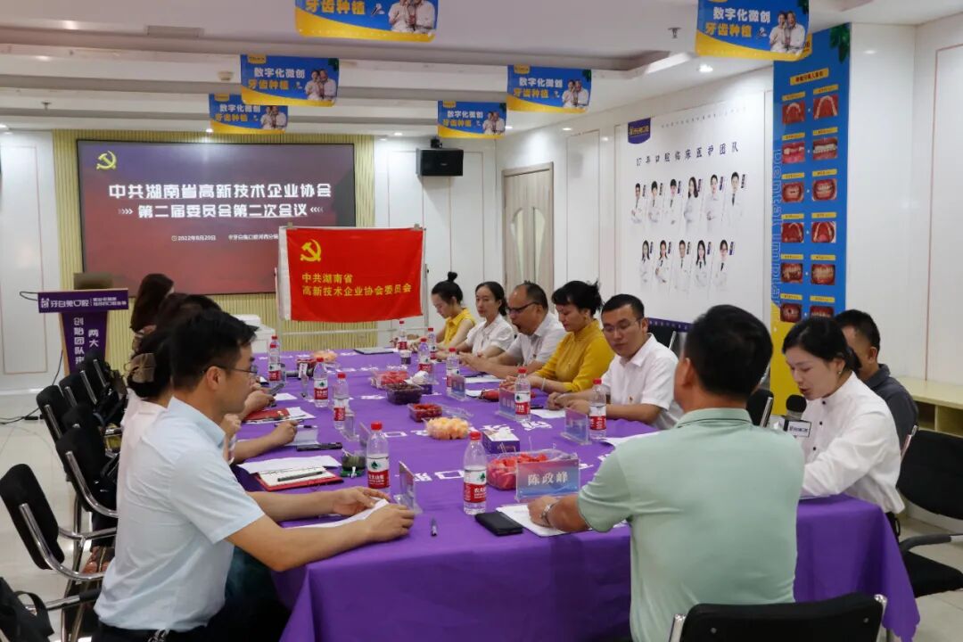 2022年8月20日,秋高气爽,晴空万里,在长沙岳麓区牙白兔口腔连锁河西总院,召开了湘高协(即湖南省高新技术企业协会)第二届党委会第二次会议 ,党委会全体成员出席了会议,党建顾问胡广斌同志以及党员代表列席了会议。