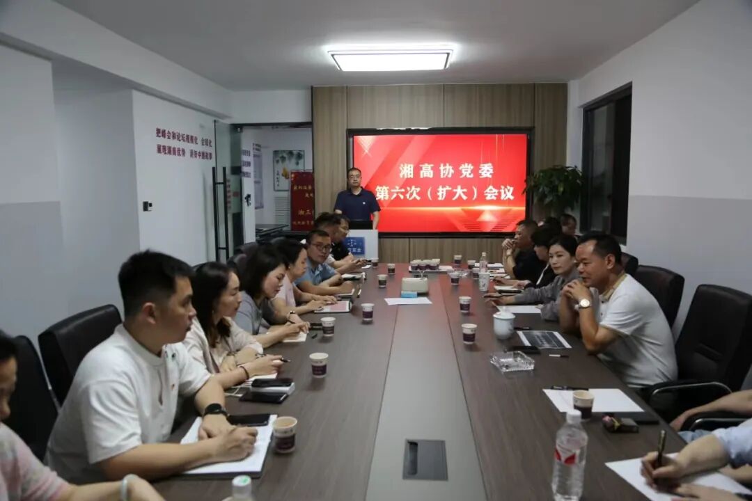 2024年6月7日,湖南省高新技术企业协会党委在协会召开了第二届六次(扩大)会议。会议总结了党委全体党员自党纪学习教育活动开展以来取得的成果,强调各支部继续组织党员认真学习领会习近平总书记关于全面加强党的纪律建设的重要论述,切实把思想和行动统一到党中央决策和省委市委安排部署上来,紧密结合实际,精心组织实施,坚持"实"的导向、务求"实"的效果,以高度的责任感使命感把党纪学习教育抓紧抓实、抓出了成效。与会同志表示应继续将党纪学习教育与主题党日活动、中心工作相结合,实现党纪学习教育的全覆盖。通过“关键少数”带头学,“绝大多数”全面学,原原本本、逐章逐条学《中国共产党纪律处分条例》,做到在学中干、在干中学,切实把党纪学习教育转化为促进工作规范开展的保障和动力。会议讨论了湘三协换届和十周年庆典事宜,并就会员服务项目和会费标准决定向理事会提出建议。会议由党委书记陈政峰主持,党委副书记何三星、鲍跟泽、邓美霞,党委委员何正翔、尚嫱、赵木川、刘霞飞、肖东敏、党委书记助理兼女创会党支部书记周利君、党建联盟办主任韩言铭出席了会议,党员代表凌建军、罗超、李顺楚等列席了会议。