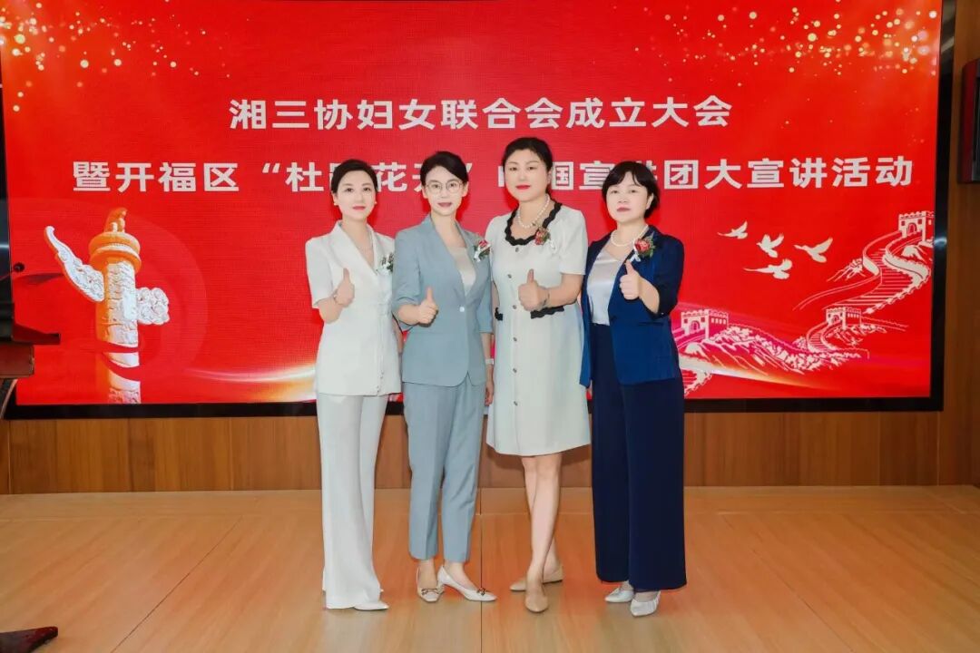 ▲开福区妇联主席成娟和当选主席、副主席合影